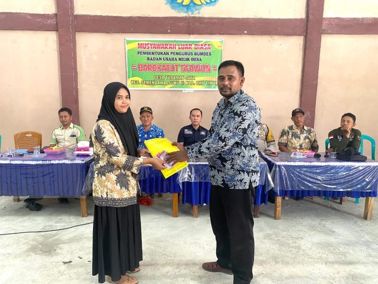Pada Jumat, 5 Juli 2024, Pemerintah Desa Taraman Jaya menggelar Musyawarah Luar Biasa dengan agenda Pembentukan Pengurus BUMDes (Badan Usaha Milik Desa) Barokatut Takawun. Acara ini berlangsung di Balai Desa Taraman Jaya, Kecamatan Semendawai Suku III, Kabupaten Ogan Komering Ulu…